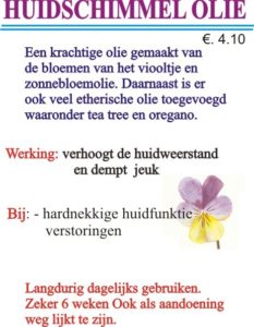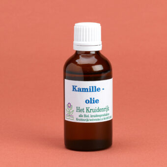 Gemaakt van Zonnebloemolie met bloemetjes van viooltje of goudsbloem en een aantal sterke etherische oliën (Biol)